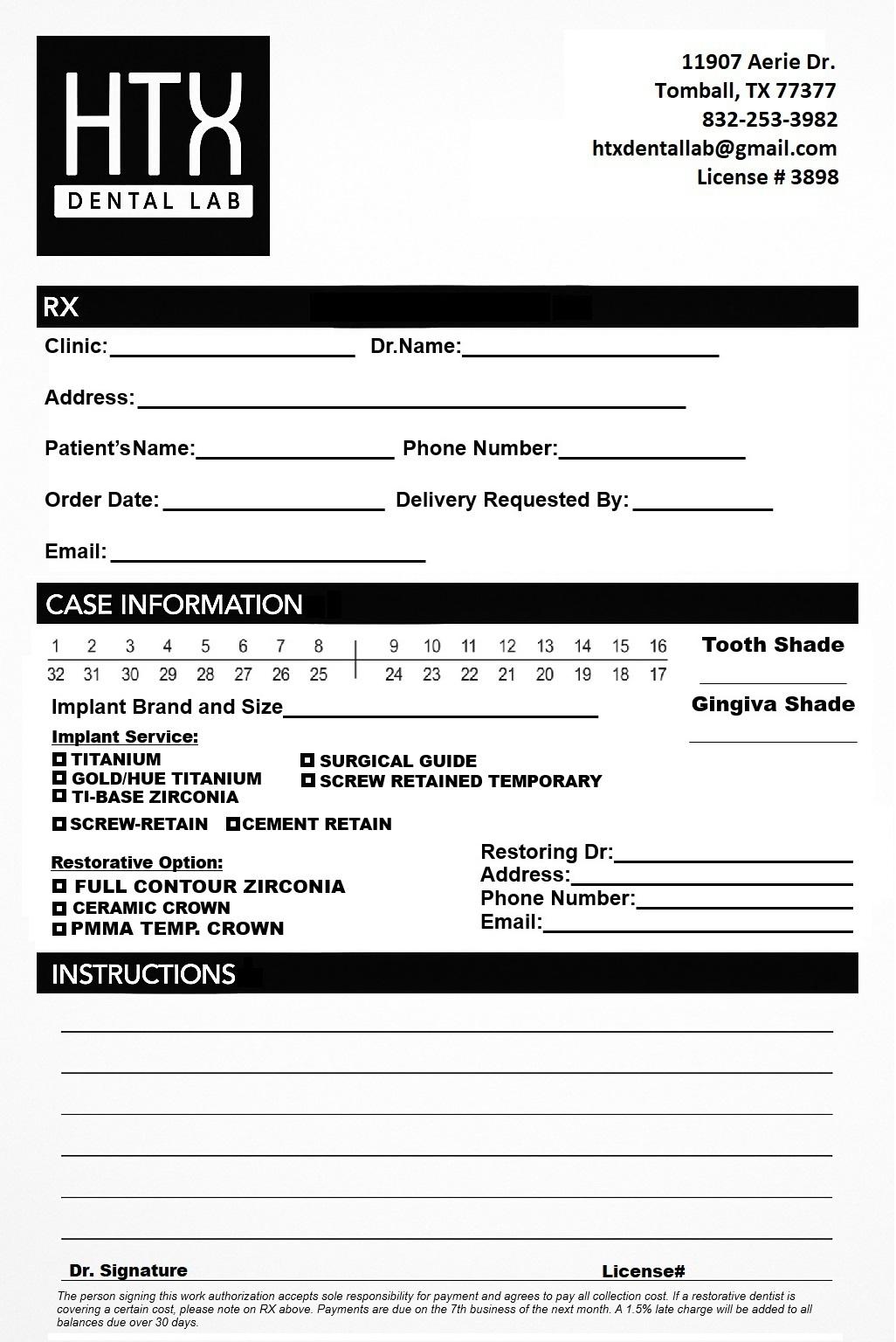 - Email HTX Dental Lab at htxdentallab@gmail.com